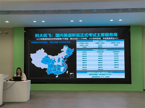 培訓(xùn)會(huì)由科大訊飛教育專家主講,內(nèi)容涵蓋了智能語音技術(shù)、人工智能輔助教學(xué)工具的應(yīng)用等多個(gè)方面。通過一系列實(shí)操演示與案例分析,參會(huì)的教師們?cè)敿?xì)了解了如何利用科大訊飛的E聽說產(chǎn)品,通過AI教師助手進(jìn)行英語教學(xué)實(shí)踐,尤其是在教學(xué)方案、備課素材、聽說讀寫訓(xùn)練和個(gè)性化學(xué)習(xí)路徑設(shè)計(jì)等方面的具體應(yīng)用。