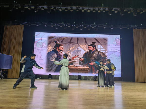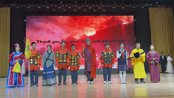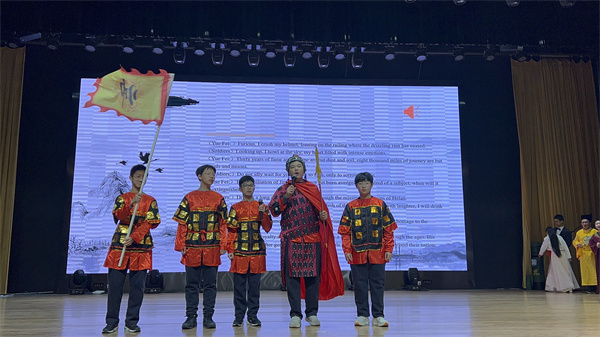 《精忠報(bào)國(guó)》(Serving the Country with Supreme Loyalty)則通過(guò)激昂的表演展現(xiàn)了民族英雄的愛(ài)國(guó)主義情懷。學(xué)生們?cè)谖枧_(tái)上的武打動(dòng)作整齊劃一、剛勁有力,同時(shí)英文臺(tái)詞中傳達(dá)出的家國(guó)大義也深深打動(dòng)了觀眾的心。