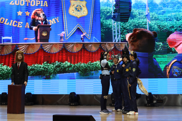 《瘋狂動(dòng)物城》(Zootopia)則以其色彩鮮艷、充滿童趣的舞臺(tái)布景和動(dòng)物造型服裝吸引了觀眾的目光。舞臺(tái)上的動(dòng)物城充滿了生機(jī)與活力,每個(gè)動(dòng)物角色的服裝都巧妙地結(jié)合了動(dòng)物的特點(diǎn)和現(xiàn)代時(shí)尚元素,充分展現(xiàn)了學(xué)生們的創(chuàng)意和想象力。
