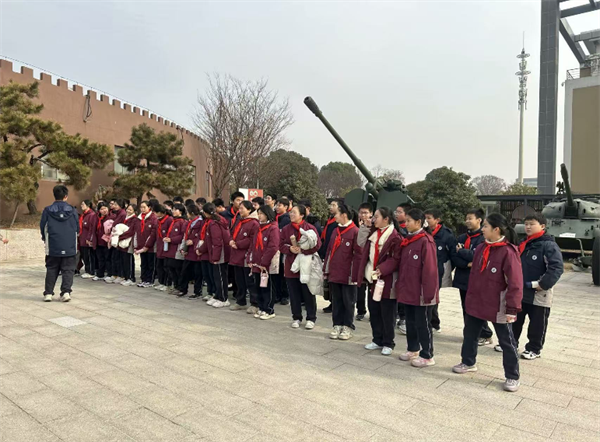 抵達(dá)國(guó)防教育基地后,同學(xué)們首先被陳列在館外的軍事用車(chē)所震撼。這些軍事用車(chē)威風(fēng)凜凜,雖靜默無(wú)言,卻仿佛在訴說(shuō)著往昔的崢嶸歲月,彰顯著強(qiáng)大的軍事力量。同學(xué)們有序地圍繞在車(chē)輛周?chē)?,仔?xì)觀察著車(chē)輛的構(gòu)造,眼神中滿是好奇與崇敬,對(duì)后續(xù)活動(dòng)的期待也愈發(fā)高漲。