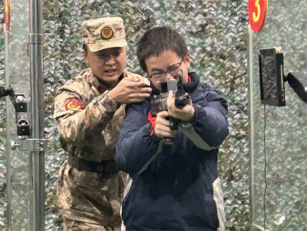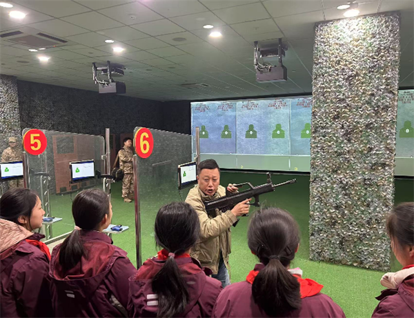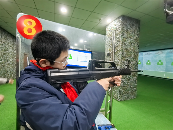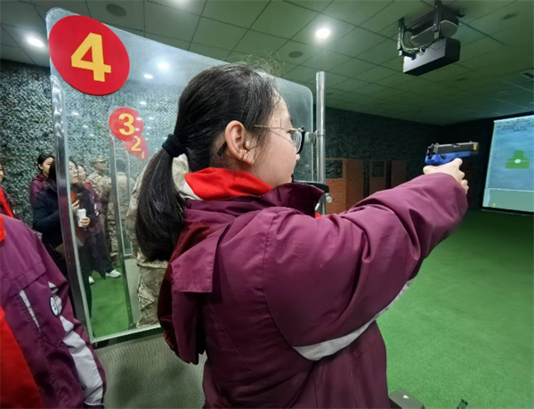 活動(dòng)中,“模擬射擊”體驗(yàn)環(huán)節(jié)將現(xiàn)場(chǎng)氣氛推向高潮。同學(xué)們手持仿真槍械,迅速進(jìn)入狀態(tài),個(gè)個(gè)神情專(zhuān)注、姿態(tài)標(biāo)準(zhǔn),展現(xiàn)出極高的熱情和認(rèn)真態(tài)度。在教官的悉心指導(dǎo)下,同學(xué)們逐步掌握了射擊技巧。當(dāng)成功擊中目標(biāo)時(shí),他們的臉上洋溢著自豪的笑容,現(xiàn)場(chǎng)響起陣陣掌聲與歡呼聲。這一環(huán)節(jié)不僅讓同學(xué)們體驗(yàn)到軍事訓(xùn)練的樂(lè)趣,更讓他們切實(shí)感受到軍人在訓(xùn)練中所必備的嚴(yán)謹(jǐn)態(tài)度和專(zhuān)注精神,深刻體會(huì)到國(guó)防建設(shè)背后的艱辛與不易。
