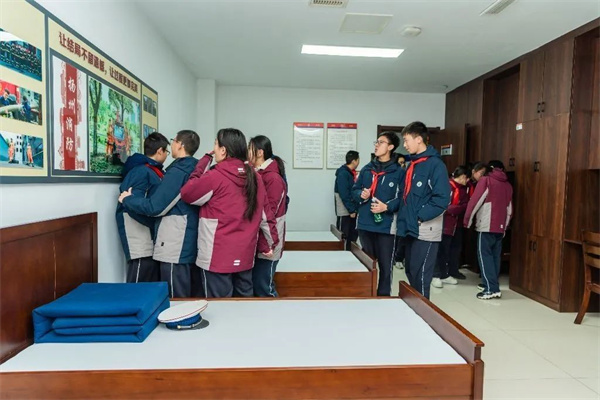 在生活區(qū),同學們參觀了消防員的內務整理。宿舍內整齊劃一的床鋪、棱角分明的被褥和干凈整潔的環(huán)境,讓同學們對消防員嚴明的作風產(chǎn)生敬佩之情。