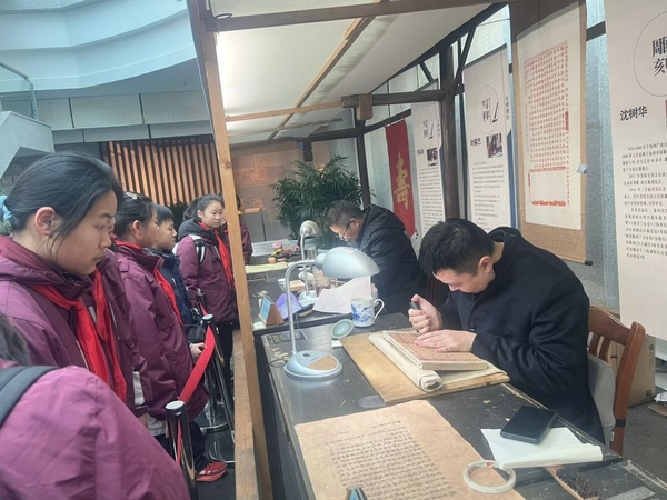 參觀結(jié)束后,同學(xué)們紛紛發(fā)表感悟。多次擔(dān)任博物館志愿者的陳子銘同學(xué)表示:“游揚(yáng)州博物館,歷史文物琳瑯滿目,徜徉其間,心中對揚(yáng)州歷史的興趣油然而生,游覽雕版印刷,刀鋒與木板交錯(cuò),鐫刻出深深的文化歷史”?!白哌M(jìn)博物館,歷史的厚重?fù)涿娑鴣?。這次實(shí)踐,讓我觸摸到歲月脈絡(luò),收獲知識,更懂得文化傳承的意義”??子贶鞍l(fā)表感慨。