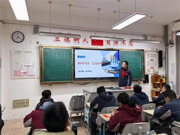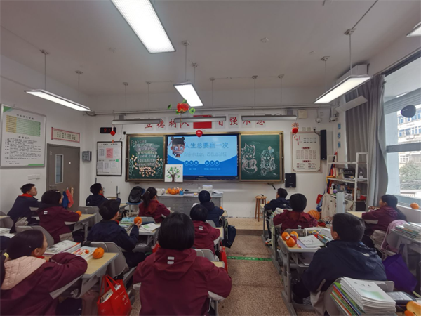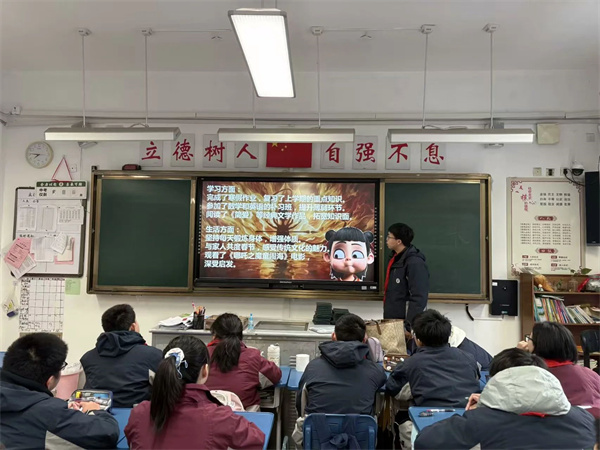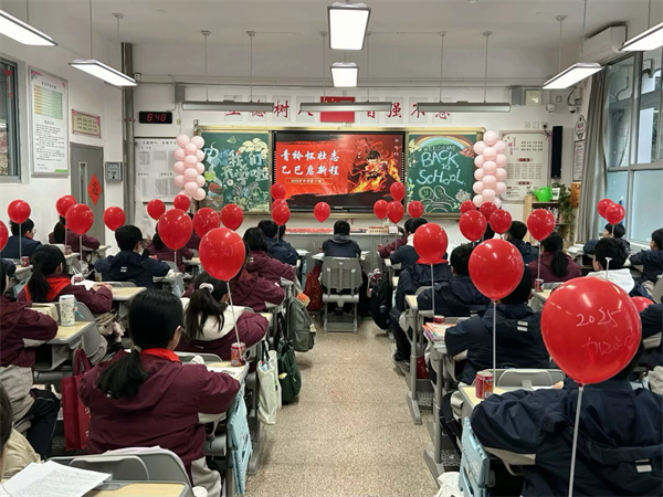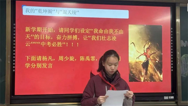 隨著《哪吒之魔童鬧?!繁穑@也是同學(xué)們聊不完的話題。學(xué)校以這部電影為素材在各班開展了“青衿懷壯志,乙巳啟新程”主題班會(huì)課,師生一起回顧電影,從性格大相徑庭的角色中,我們學(xué)到了石磯娘娘的樂觀幽默、可愛自信、內(nèi)心強(qiáng)大。學(xué)到了哪吒從否定自我到堅(jiān)定自我的成長和不被命運(yùn)折服的堅(jiān)強(qiáng)。就像電影臺(tái)詞中所說的一樣:“若前方無路,我便踏出一條路;若天地不容,我就扭轉(zhuǎn)這乾坤。”“因?yàn)槲覀兌继贻p,不知天高地厚?!毕嘈盼覀儠?huì)和哪吒一樣有直面一切困難的勇氣,始終勇往直前,不懼任何困難與挑戰(zhàn)。接著我們再次重溫的校紀(jì)班規(guī),同學(xué)們調(diào)整姿態(tài),積極迎接新學(xué)期的到來。??