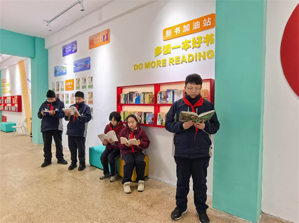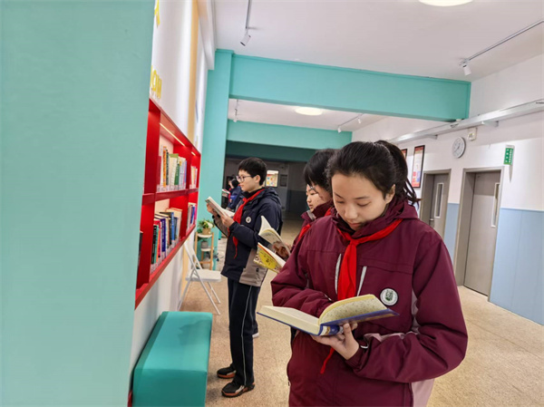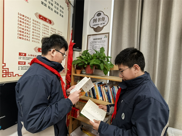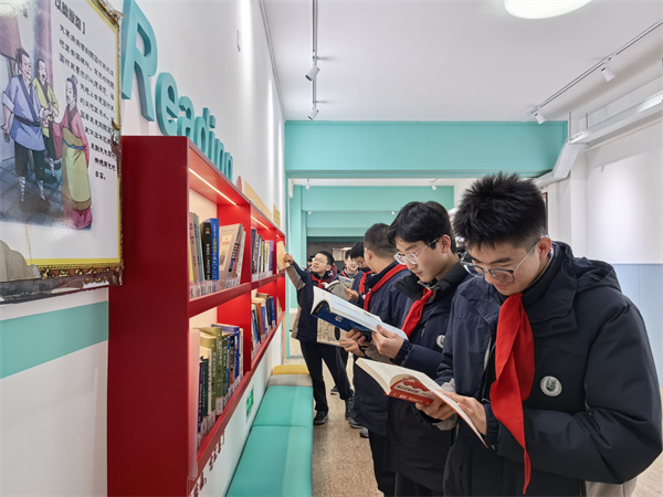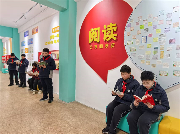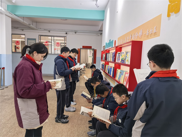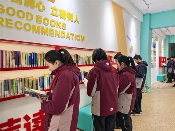 甫入教學(xué)樓,三樓的閱讀長廊,像一座靜靜矗立的知識寶庫。人文巨擘的思想、科學(xué)大家的智慧在這里匯聚,從《論語譯注》的諄諄教誨到《萬物簡史》的奇妙探索,每一本書都在無聲地訴說著世界的廣袤與深邃。 教室里,班級圖書角是知識的靈動泉眼。課余時分,學(xué)生們或靜靜捧讀,或熱烈討論,從《簡·愛》中汲取追求平等與獨立的力量,在《幾何原本》里領(lǐng)悟邏輯的嚴(yán)謹(jǐn)。 漫步校園,處處可見沉浸書海的身影。清晨,朗朗書聲喚醒朝陽;課間,三兩成群交流心得;午后,陽光傾灑在閱讀的面龐上。濃厚的讀書氛圍,讓書香成為校園最獨特的氣質(zhì)。在這里,學(xué)校以書育人,秉持樹人精神,將揚(yáng)州城的千年文脈,釀成了少年們眼底的晨星。