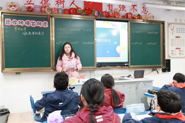 揚(yáng)州市中學(xué)數(shù)學(xué)教研員戚有健老師走進(jìn)了初一8班代慶文老師與初一3班曹莉莉老師的課堂。戚老師認(rèn)為兩位老師以同課異構(gòu)的方式分別執(zhí)教《同底數(shù)冪的乘法》設(shè)計(jì)新穎,師生與生生互動(dòng)良好,有效激發(fā)了學(xué)生的探究興趣、發(fā)展了學(xué)生的思維。