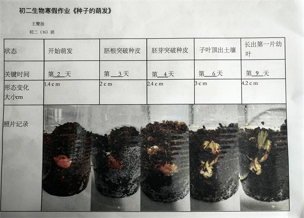 為落實(shí)“雙減”政策,進(jìn)一步推動(dòng)“五育”并舉,豐富學(xué)生假期生活,南門(mén)街校區(qū)生物組精心設(shè)計(jì)了融科學(xué)性、趣味性于一體的特色寒假實(shí)踐作業(yè)。生物組老師們根據(jù)初一、初二不同的學(xué)情特點(diǎn),推出多元化、可選擇的實(shí)踐項(xiàng)目,引導(dǎo)學(xué)生在動(dòng)手實(shí)踐中感受生命科學(xué)的魅力。