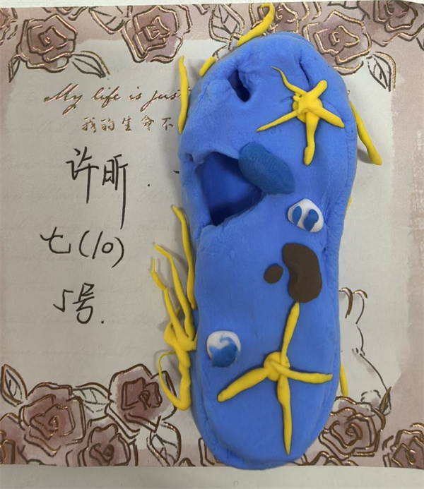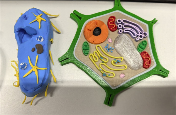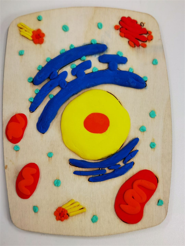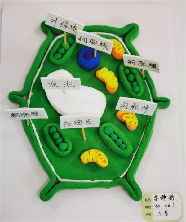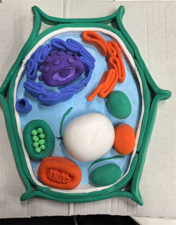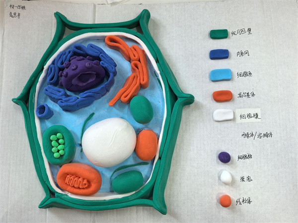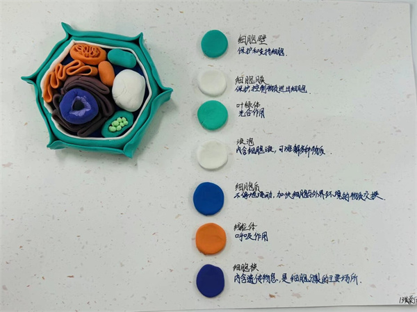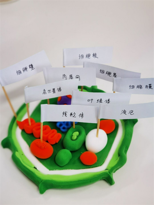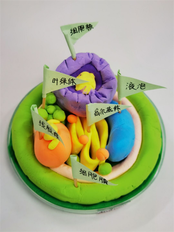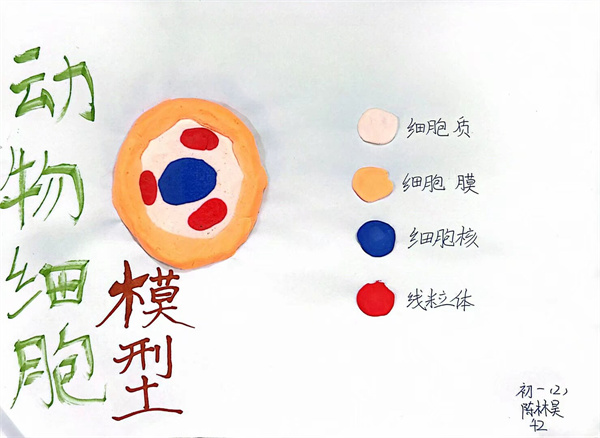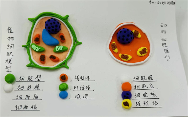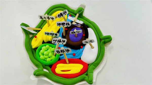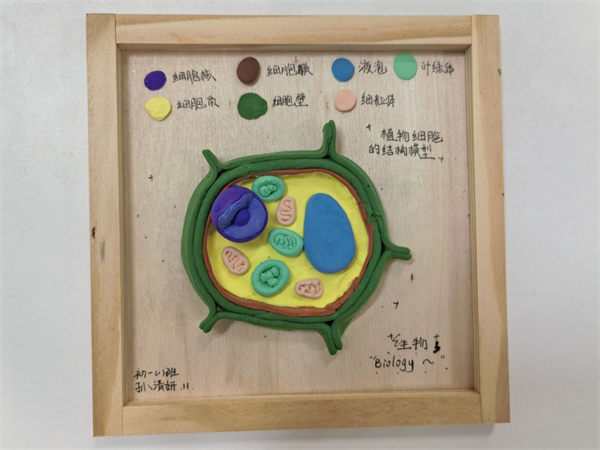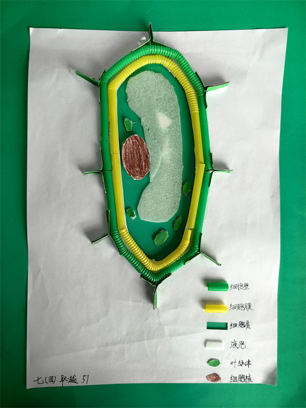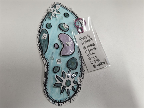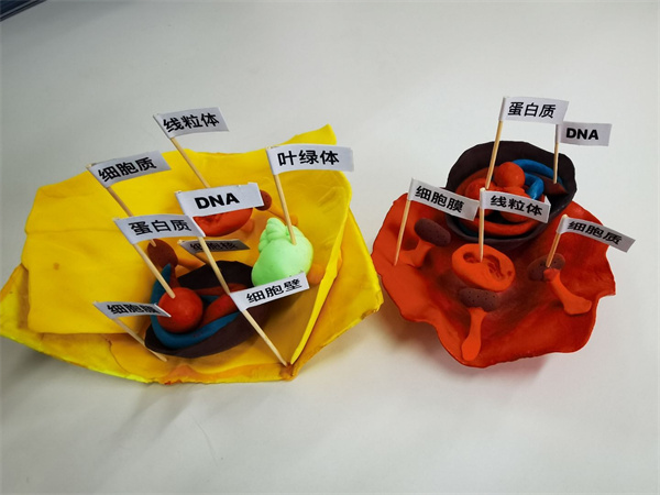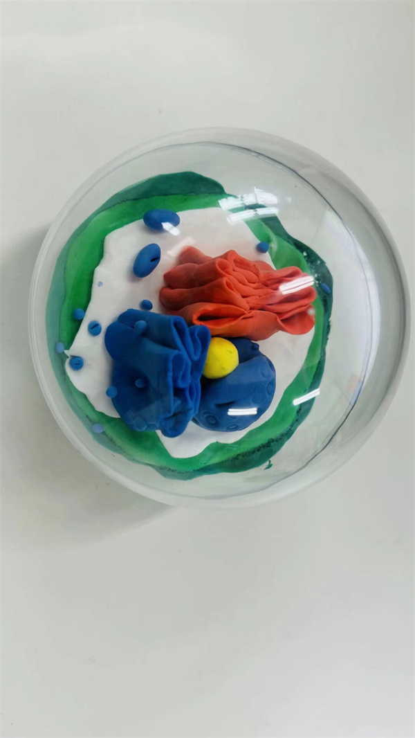 初一年級(jí)以"探尋生命奧秘"為主題,提供兩項(xiàng)跨學(xué)科作業(yè)選擇。學(xué)生既可利用廢舊材料制作動(dòng)植物細(xì)胞立體模型,通過(guò)捏塑、拼接理解細(xì)胞結(jié)構(gòu);也可打造微型水族箱,在飼養(yǎng)金魚(yú)的全程觀察中培養(yǎng)生態(tài)意識(shí)。在本次活動(dòng)中,七年級(jí)學(xué)生利用身邊簡(jiǎn)易材料,綜合運(yùn)用了生物學(xué)、數(shù)學(xué)、美術(shù)、物理等學(xué)科的概念與方法,高質(zhì)量的完成了細(xì)胞模型和水族箱的制作。