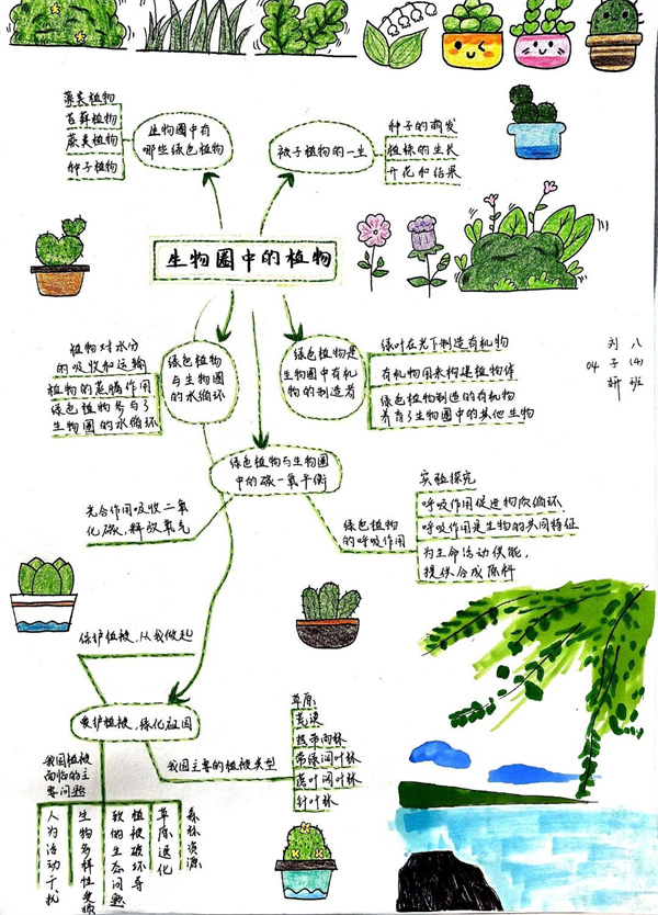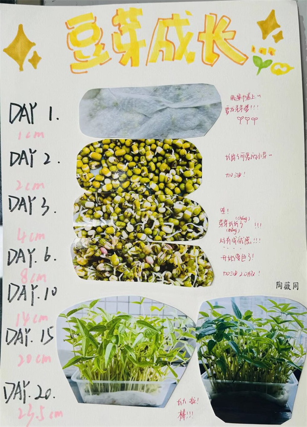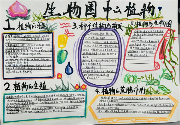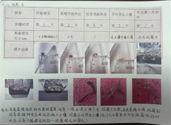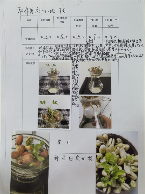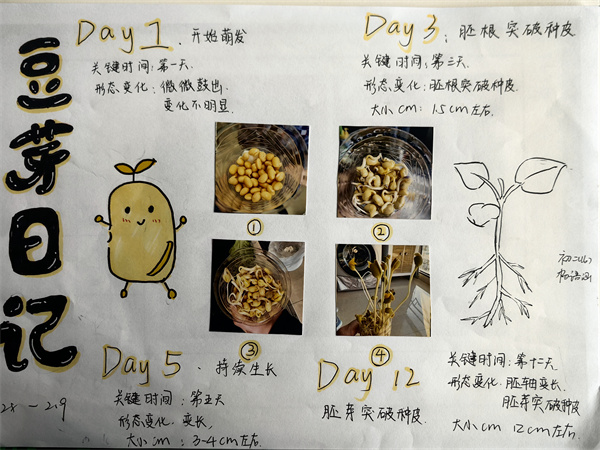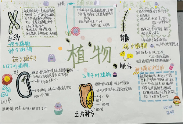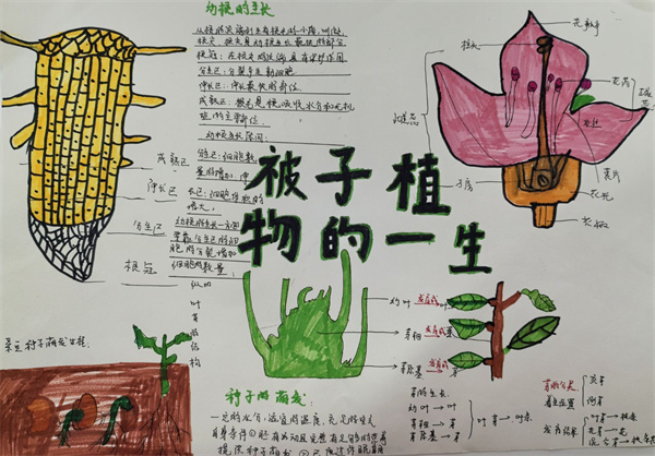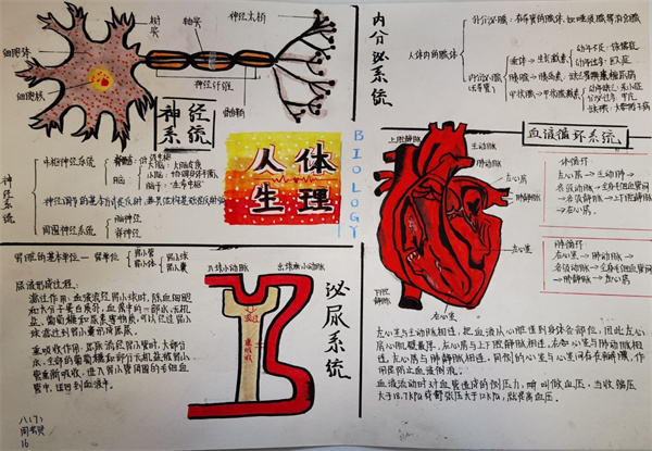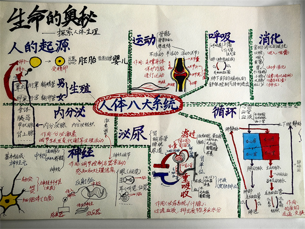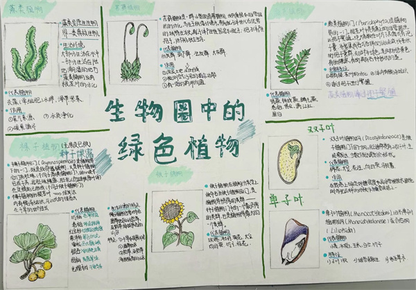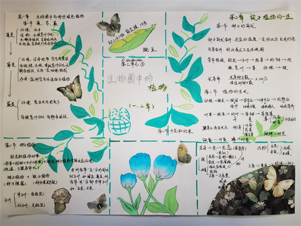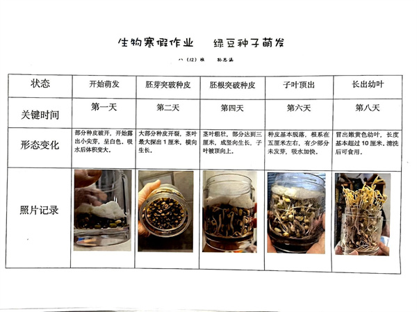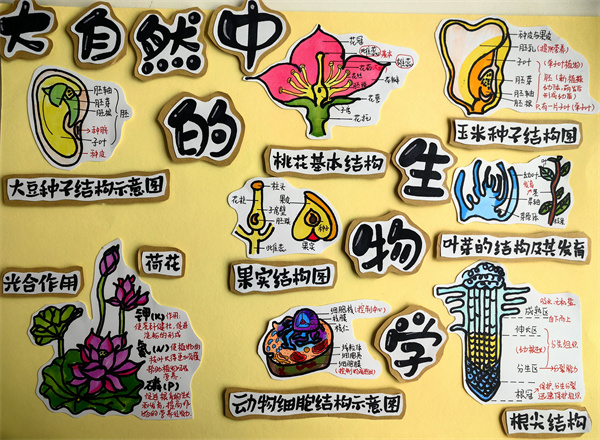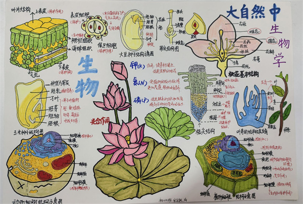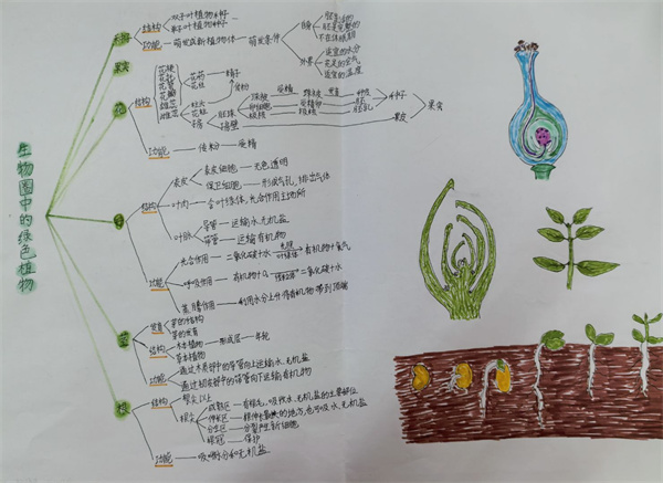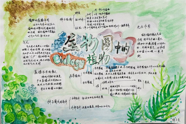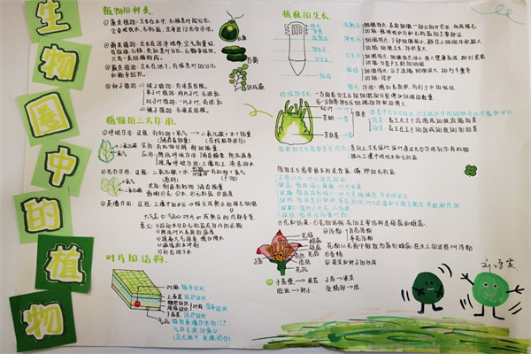 初二年級(jí)聚焦"生命成長(zhǎng)觀察",設(shè)置種子萌發(fā)實(shí)驗(yàn)與思維導(dǎo)圖繪制兩大任務(wù)。前者通過(guò)透明容器實(shí)時(shí)記錄種子破土而出的全過(guò)程,后者以手繪方式系統(tǒng)梳理生物生理知識(shí)體系。在探究種子萌發(fā)作業(yè)中,同學(xué)們精心種植,每日觀察并記錄種子萌發(fā)不同階段的狀態(tài),并用文字和圖片記錄生命成長(zhǎng)的軌跡。在繪制思維導(dǎo)圖作業(yè)中,學(xué)生們對(duì)學(xué)過(guò)的知識(shí)進(jìn)行歸納梳理,探尋知識(shí)點(diǎn)之間的聯(lián)系,主題鮮明突出,圖文并茂,巧妙整合構(gòu)建生物學(xué)科中的知識(shí)體系,提高了學(xué)生自主分析歸納能力,還極大的幫助同學(xué)們備戰(zhàn)生物會(huì)考。