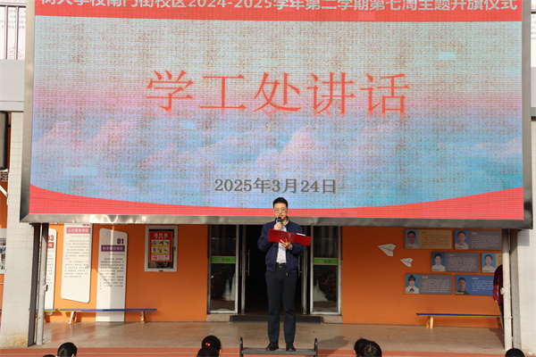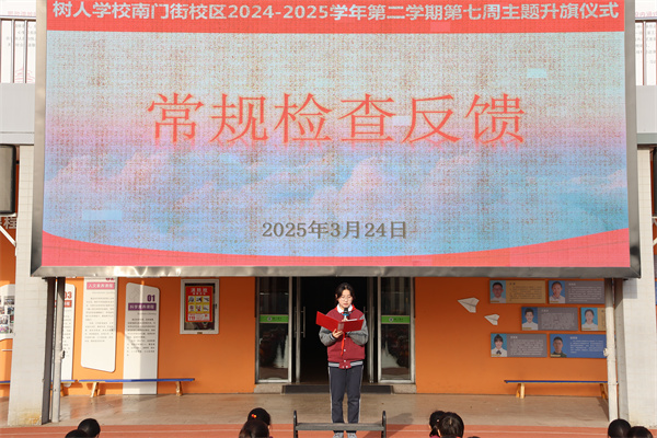 3月24日上午7時40分,樹人學校南門街校區(qū)全體師生齊聚操場,在初春的暖陽中舉行以“春芽破土時,少年正拔節(jié)”為主題的升旗儀式,以蓬勃朝氣開啟新一周的學習生活。本次升旗儀式由初一3班主要負責,升旗手是吳艾潤同學,護旗手是李亦可和董愛金同學,主持人由李嘉茜同學擔任。