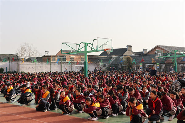 接著,升旗儀式正式開始。伴隨雄壯的《義勇軍進行曲》,鮮艷的五星紅旗冉冉升起,全體師生肅立注目,少先隊員高舉右手敬禮。春風拂過校園,晨光灑在少年挺直的脊梁上,如新芽初綻的枝頭,蓄滿向上生長的力量。
