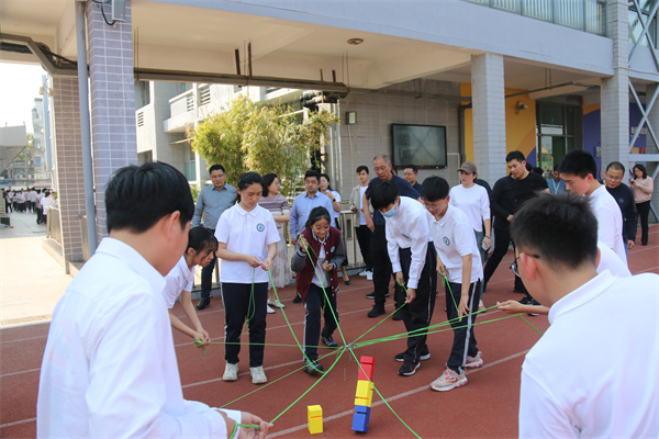 觀摩現(xiàn)場,嘉賓們依次參觀了分散在校園各個角落的學(xué)生活動,活動分為“團建合作、非遺文化、傳統(tǒng)游戲、競技體育、棋類益智”五大類,包括花樣跳繩、同心鼓、投壺套圈、抖空竹、跳橡皮筋、彩帶龍等二十多項。新穎的項目、豐富多樣的課間活動展示了學(xué)生的青春活力,充分彰顯了“沸騰校園”的特質(zhì)。