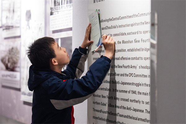 接著,師生們來到了新四軍紀(jì)念館。一件件珍貴文物、一幅幅歷史畫面,生動再現(xiàn)了新四軍將士浴血奮戰(zhàn)的革命歷程。從挺進(jìn)江南開始,新四軍開辟了南根據(jù)地,研發(fā)抗日武器。到最終的整風(fēng)、共產(chǎn)、民主。新四軍走過了中華的春華秋實(shí),是拯救民族的英雄團(tuán)體。