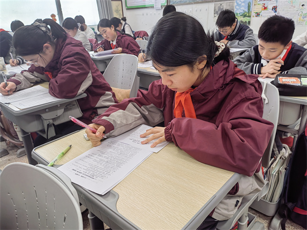 第二輪“火眼金睛”創(chuàng)新性地將成語識別與視覺挑戰(zhàn)結(jié)合,如“既往不咎”被故意寫作“既往不究”,部分同學(xué)迅速捕捉問題并改正,其敏銳洞察力獲老師點(diǎn)贊。該環(huán)節(jié)高潮迭起,甚至有班級出現(xiàn)全對的情況。