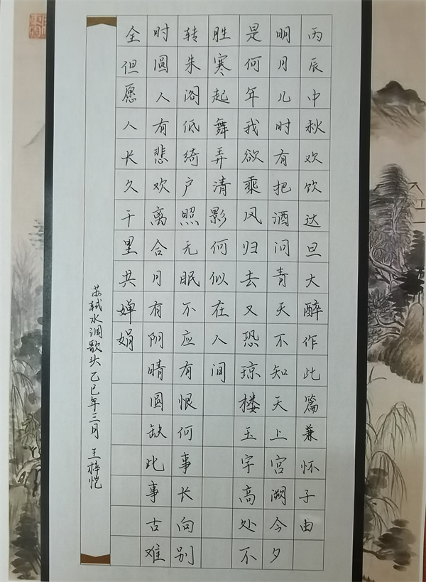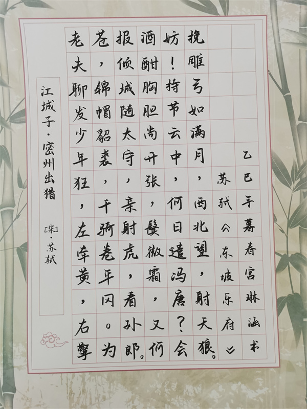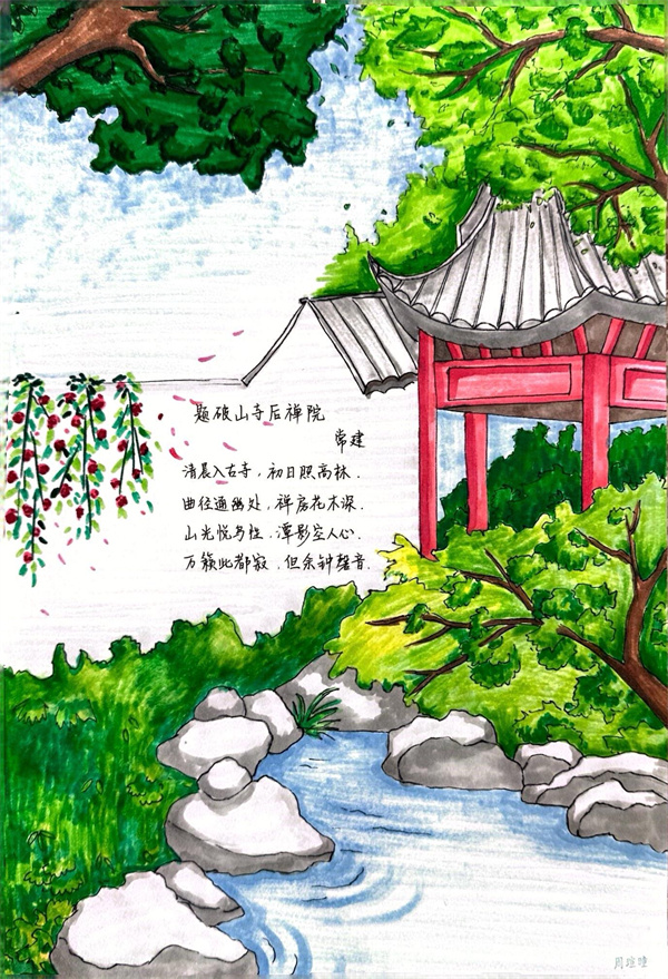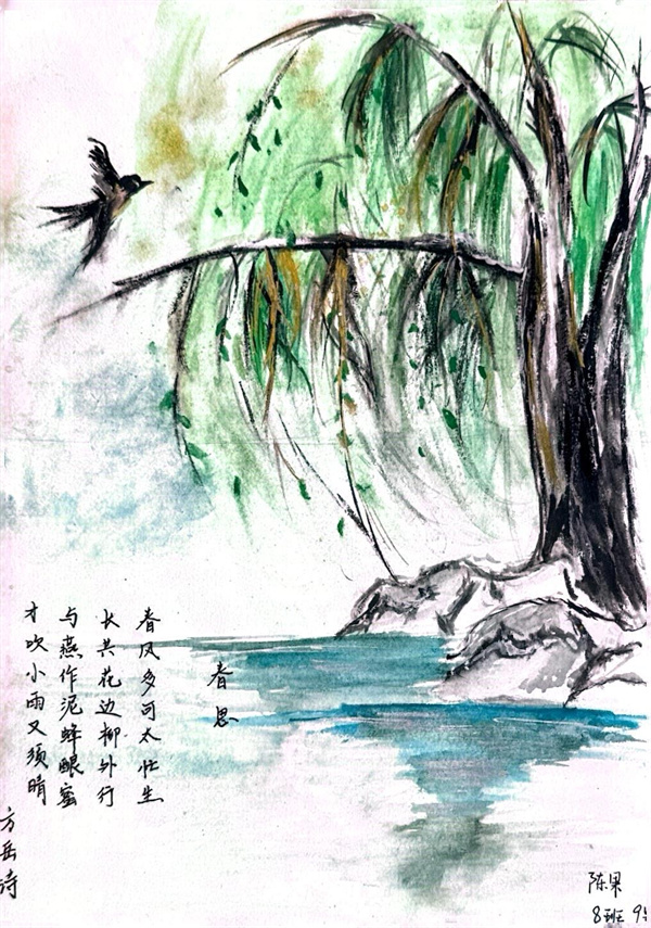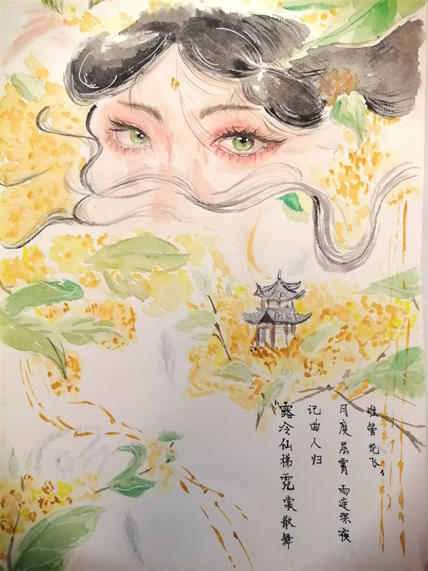 各班級活動小組以創(chuàng)意形式展現古詩魅力:“編配唱古詩”小組別出心裁,創(chuàng)新匯編蘇軾詞聯(lián)唱,將《念奴嬌?赤壁懷古》的豪邁壯闊與《水調歌頭?明月幾時有》的婉約深情巧妙串聯(lián),用青春的歌喉詮釋 "一蓑煙雨任平生" 的豁達與 "千里共嬋娟" 的溫情,古典詩詞與現代音樂的碰撞引發(fā)全場共鳴?!芭錁防收b”環(huán)節(jié)中,舒緩琴音里,《春江花月夜》的婉轉悠揚似明月清泉流淌山間,“江流宛轉繞芳甸”的細膩吟誦與琴音相得益彰,將古典詩詞的韻律之美演繹得淋漓盡致。