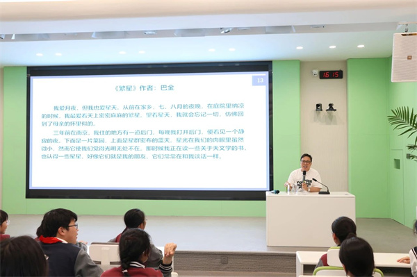 最后,李老師通過巴金先生的作品《繁星》與現(xiàn)場的同學們互動,現(xiàn)場氣氛熱烈。