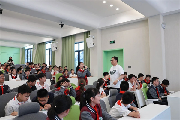4月25日下午,揚州廣電主持人李毅走進樹人學校南門街校區(qū)多功能廳,為中華經(jīng)典誦讀大賽參賽選手開展專題培訓?;顒蝇F(xiàn)場匯聚百余名初二學生,同時通過直播連線覆蓋同年級所有班級,師生們在聲韻流轉中共赴經(jīng)典之約。