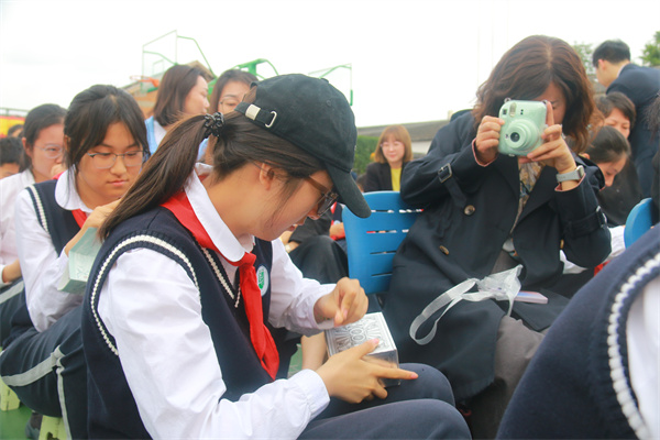 青春的回響,需要親情的和鳴。三組家庭代表誦讀《致青春·愛的回聲》,濃濃的深情涓涓流淌。與此同時,驚喜悄然而至,每一位家長都為孩子精心準備了一份意義非凡的禮物和一封手寫的家信,同學(xué)們打開期待已久的成長禮物,感受“紙短情長”的殷切期望,這一刻父母的牽掛與期許都化作無聲的淚光與會心的微笑。