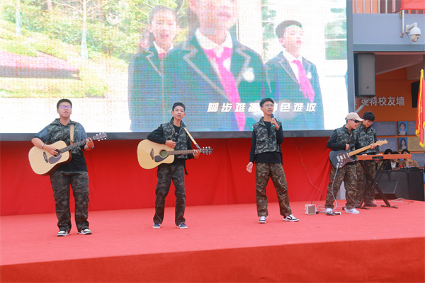 退隊旗儀式結(jié)束后,同學(xué)們齊唱校歌。