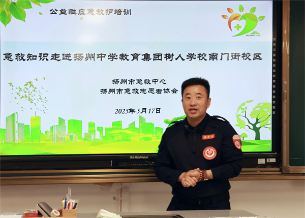 5月17日,揚(yáng)州市急救中心和揚(yáng)州市急救志愿者協(xié)會(huì)的培訓(xùn)老師,走進(jìn)樹人南門街校園各個(gè)班級(jí),開展了一場(chǎng)生動(dòng)實(shí)用的急救知識(shí)普及活動(dòng),為師生們帶來了一堂別開生面的生命教育課,進(jìn)一步增強(qiáng)了大家的安全意識(shí)和應(yīng)急救護(hù)能力。
