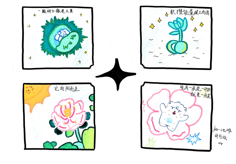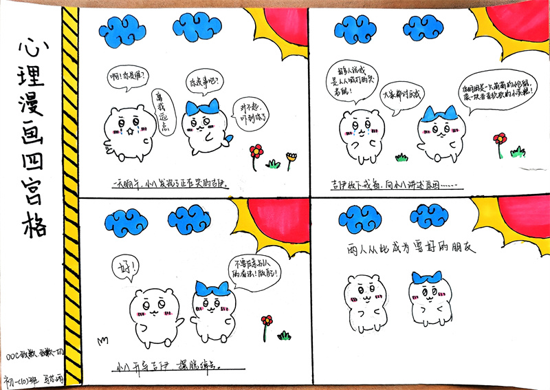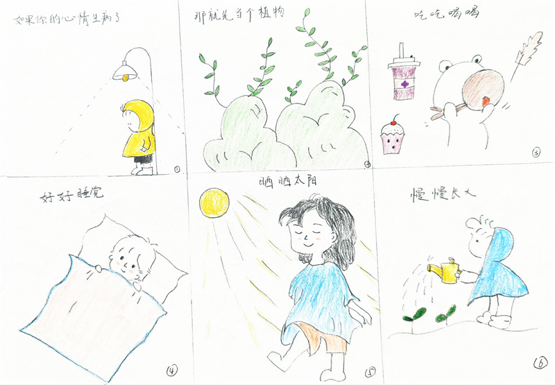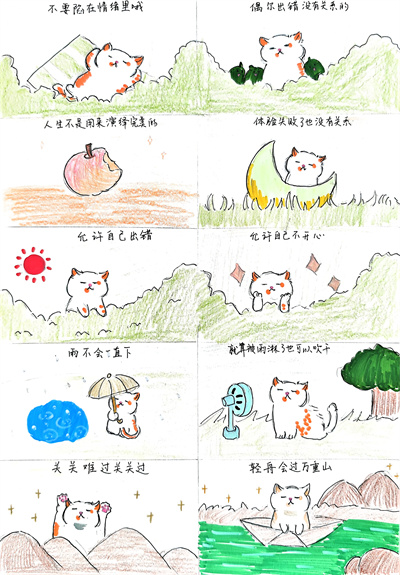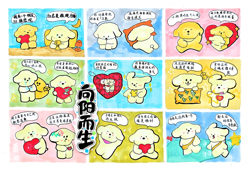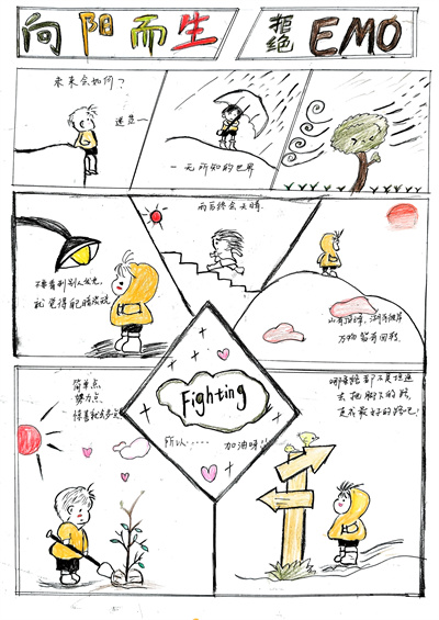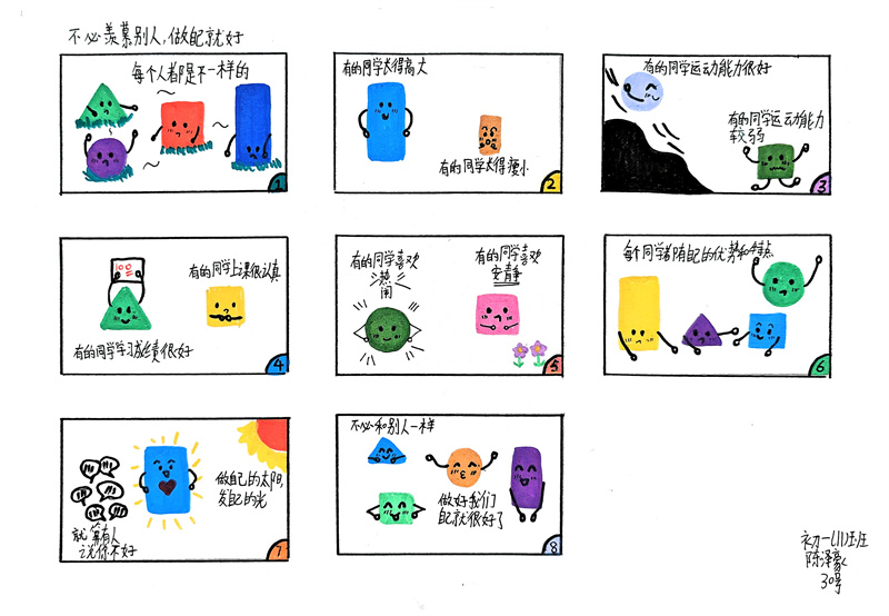 同學(xué)們充分發(fā)揮想象力和創(chuàng)造力,用絢麗的色彩、生動的畫面和巧妙的構(gòu)思,將成長中的點滴感悟、內(nèi)心的情緒與思考融入一幅幅漫畫作品中。這些作品有的展現(xiàn)了與同學(xué)相處的溫暖瞬間,有的表達(dá)了面對學(xué)習(xí)壓力時的自我調(diào)節(jié),有的描繪了對美好未來的憧憬,從不同角度展現(xiàn)了初一學(xué)生的心理狀態(tài)和精神風(fēng)貌。