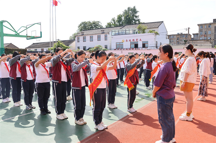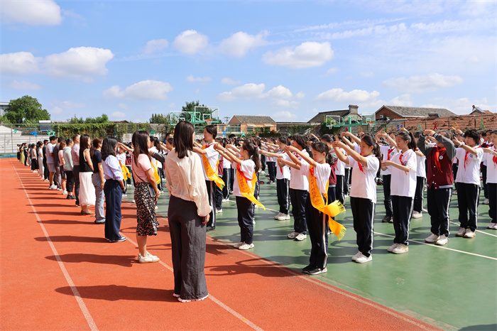 最令人動(dòng)容的環(huán)節(jié)莫過于“拜師禮”,將整場活動(dòng)推向高潮。伴隨著柔和的樂聲,同學(xué)們在主持人的引導(dǎo)下整衣正冠、端身肅立,以最莊重的儀態(tài)面向教師代表?!耙话荩心顜煻?,謝您領(lǐng)我步入知識(shí)殿堂!”同學(xué)們深深鞠躬,那一份虔誠令臺(tái)上老師不禁動(dòng)容;“二拜,銘記師訓(xùn),謝您教我立身處世之道!”再度躬身,同學(xué)們目光中更多了幾分堅(jiān)毅;“三拜,勤學(xué)不輟,誓以優(yōu)異成績回報(bào)您無私的付出!”第三躬落下,現(xiàn)場掌聲雷動(dòng),老師微微頷首,仿佛與學(xué)子們許下了“勤學(xué)奮進(jìn)”的無言約定。