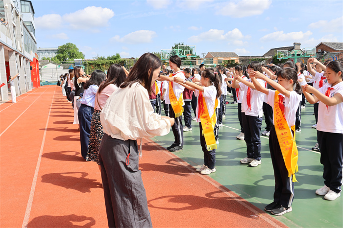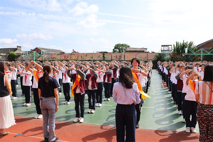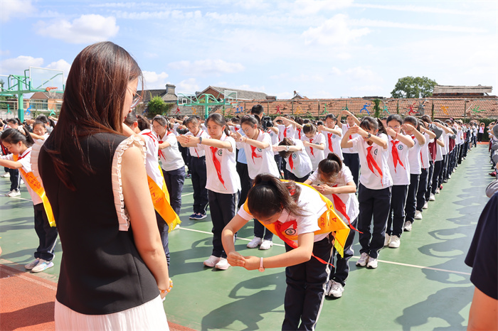 隨后,學(xué)校少先大隊(duì)部代表宣讀了教師節(jié)倡議書。大隊(duì)委的聲音清亮有力,每一條倡議都如一粒石子,在師生心湖中漾開圈圈漣漪。臺(tái)下同學(xué)凝神靜聽,不時(shí)默默點(diǎn)頭。如何尊師、何以感恩的信念,正悄然根植于一顆顆年少的心靈。