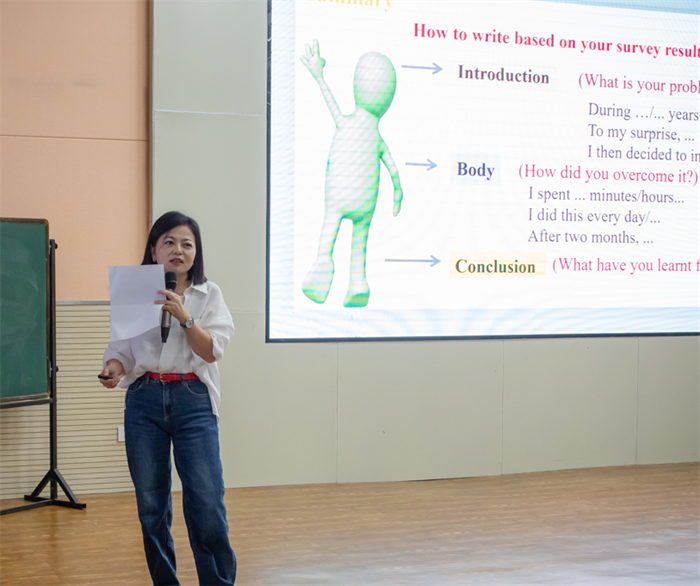 接著工作坊指導(dǎo)教師、揚(yáng)州市竹西中學(xué)的王燕老師帶來(lái)了本單元的Integration D & The Spelling Bee的展示,完美地將寫(xiě)作課與課外閱讀融合,呈現(xiàn)了一節(jié)精彩的基于單元整體教學(xué)的寫(xiě)作課。