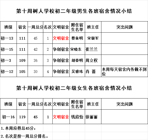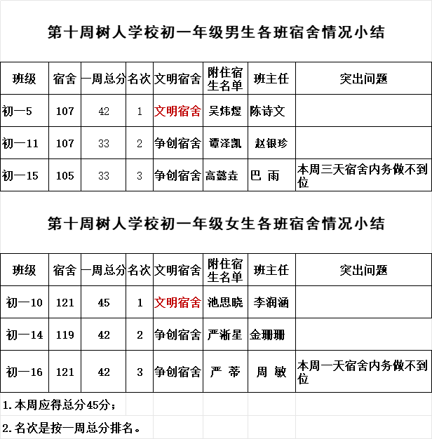 2024年秋學(xué)期九龍湖校區(qū)第十周各宿舍小結(jié)