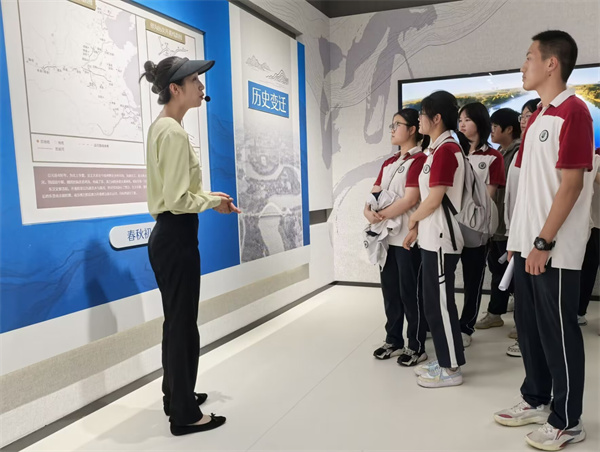 申遺十周年展館,宛如一幅流動(dòng)的歷史畫卷,鋪展在大運(yùn)河揚(yáng)州段的璀璨篇章中。在工作人員的生動(dòng)講解下,實(shí)踐隊(duì)成員了解了大運(yùn)河的申遺之路,保護(hù)之路以及未來規(guī)劃,沉浸式體驗(yàn)了那份源自遠(yuǎn)古的呼喚,感受自然風(fēng)光與文化底蘊(yùn)的完美融合。