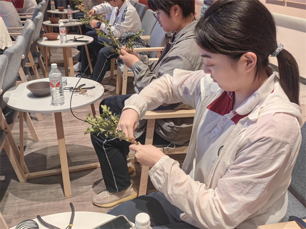 作為國家級非物質(zhì)文化遺產(chǎn),揚(yáng)派盆景源遠(yuǎn)流長,它層次分明、嚴(yán)整平穩(wěn)的獨(dú)特造型,關(guān)鍵就在于精巧的剪扎技藝。揚(yáng)派盆景非遺傳承人李蘭華詳細(xì)介紹了揚(yáng)派盆景的發(fā)展歷程、藝術(shù)特點(diǎn)和制作要點(diǎn)等。紙上得來終覺淺,絕知此事要躬行,實(shí)踐隊(duì)成員動(dòng)手實(shí)操,構(gòu)型、剪扎、修剪……