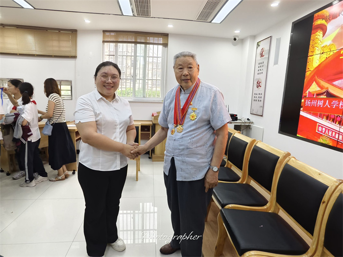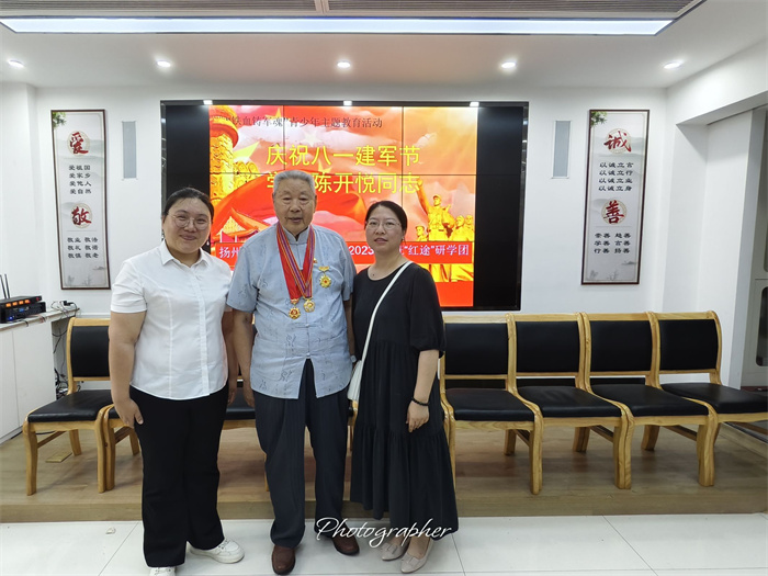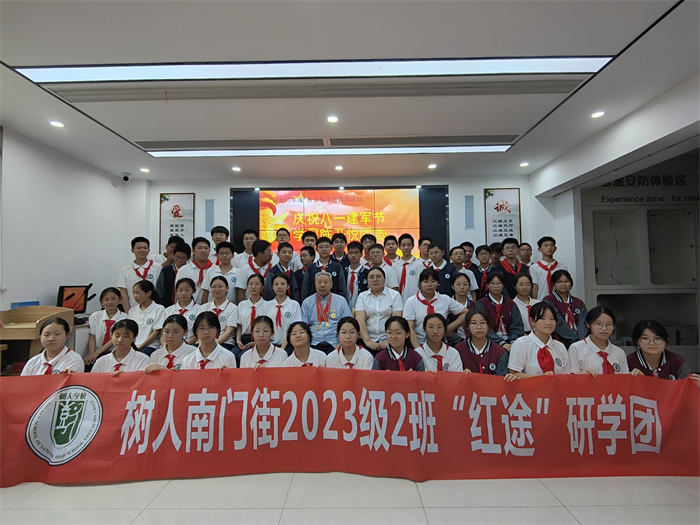 夏風(fēng)颯颯,革命情懷激烈;夏日炎炎,“紅途”研學(xué)思甜。7月25日下午,在“八一”建軍節(jié)即將到來之際,初一(2)班全體同學(xué)在班主任朱老師的帶領(lǐng)下,同學(xué)們走進(jìn)瘦西湖街道友誼社區(qū)開展“鐵血鑄軍魂”青少年主題教育活動(dòng)。全體同學(xué)慰問抗美援朝退伍老兵,聽老兵陳開悅爺爺講述軍功章背后的初心故事,回憶崢嶸軍旅歲月,共同慶?!鞍艘弧苯ㄜ姽?jié)。