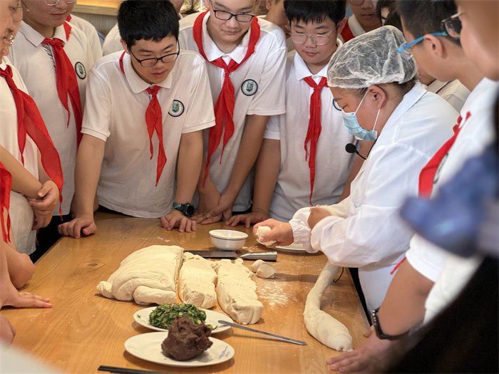 24褶包子是揚(yáng)州的非物質(zhì)文化遺產(chǎn),小巧玲瓏,飽滿鮮香。走進(jìn)食堂,在非遺傳承師傅的指導(dǎo)下,同學(xué)們拿起面團(tuán),認(rèn)真地模仿著師傅搟皮、填餡、捏褶,樂(lè)此不疲。不一會(huì),一個(gè)個(gè)包子便出現(xiàn)在桌子上,雖沒(méi)有那么精致,卻是同學(xué)們親手制作的勞動(dòng)成果,更覺(jué)可貴。