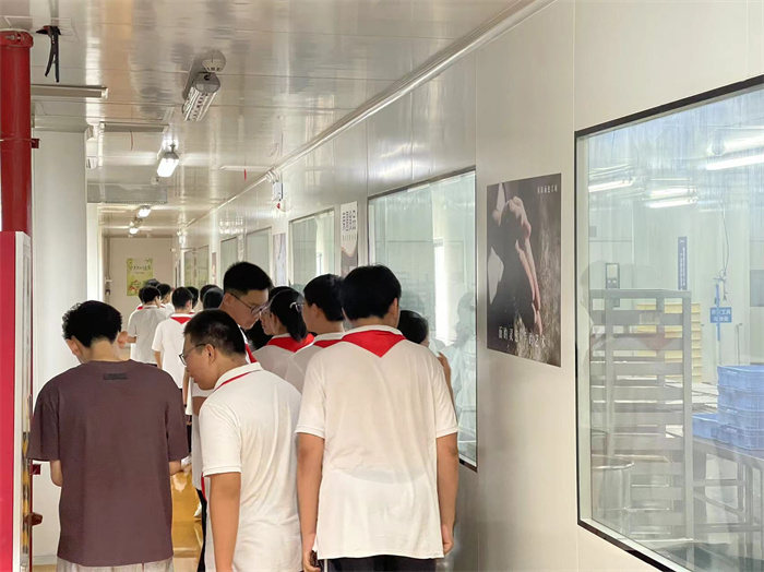 記憶猶新的,是制作包子的流水線,里面的工作人員身穿防護(hù)服,干練嫻熟地整理著包子,親切地向同學(xué)們打招呼。同學(xué)們津津有味地觀察著這個(gè)運(yùn)行井然有序的工廠,贊嘆不已。