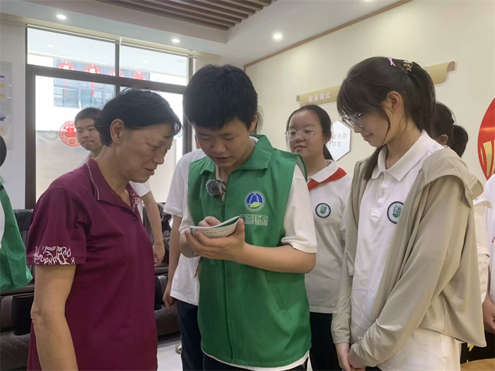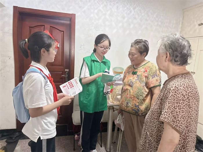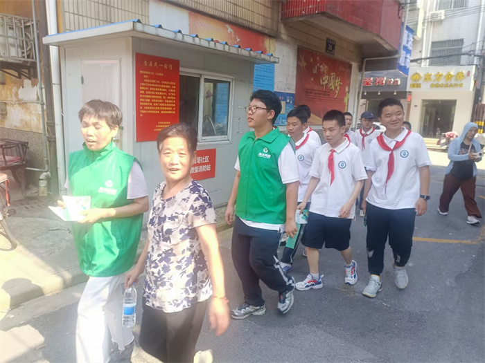 理論學(xué)習(xí)之后,便是實(shí)踐的舞臺(tái)。同學(xué)們在老師和垃圾分類志愿者們的帶領(lǐng)下,分成若干小組,領(lǐng)隊(duì)的小志愿者身著“環(huán)保小衛(wèi)士”的服裝,帶著熱情與期待,踏上了前往居民家中進(jìn)行垃圾分類知識(shí)宣傳和指導(dǎo)的“旅途”。他們手持宣傳冊,面帶微笑,耐心地向居民們講解垃圾分類的意義和方法,并親手示范如何正確分類垃圾。遇到疑惑不解的居民,同學(xué)們更是耐心解答,用他們稚嫩卻堅(jiān)定的聲音,傳遞著環(huán)保的理念和力量。
