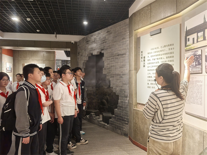 隨后,師生們依次參觀了各個(gè)展區(qū),從江上青的早年生活到他參與革命斗爭(zhēng)的珍貴照片、書(shū)信、遺物,每一件展品都仿佛在訴說(shuō)著那個(gè)時(shí)代的風(fēng)云變幻和革命先烈們的不朽精神。在模擬的敵后抗日工作場(chǎng)景前,學(xué)生們更是駐足良久,通過(guò)互動(dòng)體驗(yàn),仿佛穿越時(shí)空,親歷那段艱苦卓絕的斗爭(zhēng)歲月。