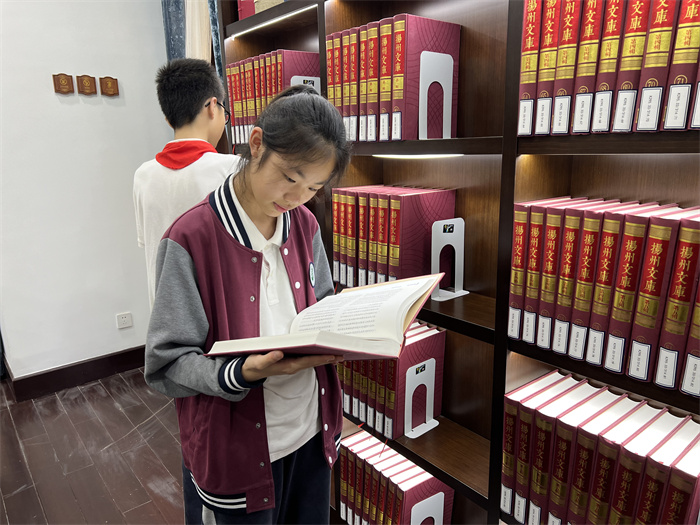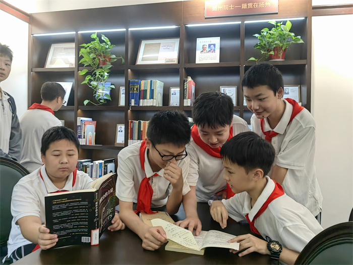 在院士廣場的北側(cè)是院士展覽館。一進入館內(nèi),古樸典雅的建筑風(fēng)格和濃厚的文化氛圍便撲面而來。我們穿梭于各個展廳之間,仿佛穿越時空,回到了那個繁華的揚州。館內(nèi)不僅有院士的剪紙風(fēng)格的頭像,還有近四百冊院士著作,以及大量的院士手冊、信札、老照片等,為我們提供了一個深入了解揚州院士生平和成就的機會。