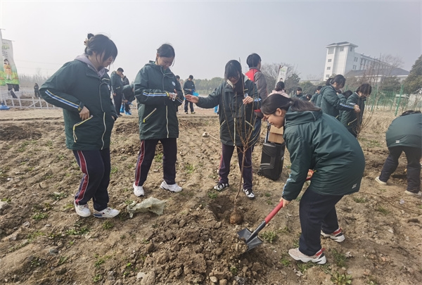 春風(fēng)拂綠,萬(wàn)物競(jìng)發(fā)。3月11日上午,龍地社區(qū)、桂花村與揚(yáng)州市樹(shù)人高級(jí)中學(xué)在桂花村開(kāi)心農(nóng)場(chǎng)聯(lián)合舉辦了“共建綠色家園,播種希望未來(lái)”三方共建儀式暨植樹(shù)活動(dòng)。本次活動(dòng)由高二年級(jí)12班,13班,14班的同學(xué)共同參加,旨在通過(guò)社區(qū)、村莊與學(xué)校的深度合作,踐行生態(tài)文明理念,深化勞動(dòng)教育實(shí)踐,共同譜寫綠色發(fā)展新篇章。樹(shù)人學(xué)校鳳棲湖校區(qū)校長(zhǎng)朱云峰、副校長(zhǎng)張鵬、團(tuán)委書(shū)記王菁,八里鎮(zhèn)黨委組織委員潘星星、統(tǒng)戰(zhàn)委員袁婷等領(lǐng)導(dǎo)出席儀式。