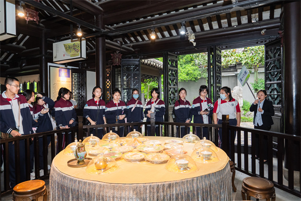 研學(xué)第二站:蘇州木瀆古鎮(zhèn)。午飯過后,同學(xué)們前往蘇州木瀆古鎮(zhèn)繼續(xù)開展春季研學(xué)活動(dòng),在古韻今風(fēng)的交融中感受傳統(tǒng)文化魅力,汲取歷史養(yǎng)分。踏入古鎮(zhèn),小橋流水、粉墻黛瓦的江南景致映入眼簾。同學(xué)們跟隨講解員,漫步在青石小巷,先后參觀了嚴(yán)家花園、虹飲山房等名勝古跡,了解古建筑精妙的營(yíng)造技藝與背后的歷史故事;穿梭于古色古香的店鋪,品味蘇繡、核雕等非遺手工藝品的獨(dú)特韻味。